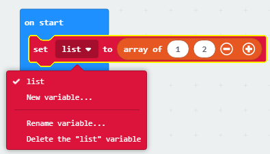 Blloku i epërm krijon listën boshe të emëruar si Listë (duke përzgjedhur opsionin New variable… nga lista rënëse).