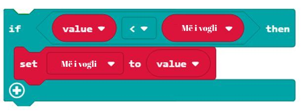 Për të kontrolluar cila vlerë e vargut është më e vogël nga numri Më i vogli, dhe për të ruajtur vlerën më të vogël, përdoren blloqet në vijim:
