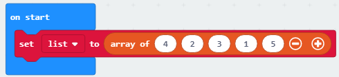 Lista krijohet pasi në kategorinë Advanced përzgjidhet nënkategoria Array dhe zgjidhet blloku: