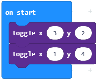 • secila diodë LED ka pozitën e vet në ekranin e Micro:bit-it, të përcaktuar me koordinatën x (horizontale) dhe koordinatën y (vertikale).
